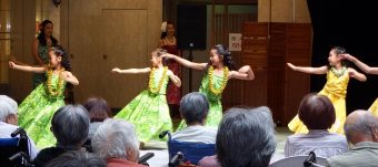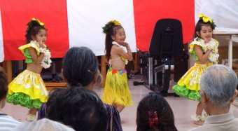 7がつ9にち、むさしのえんでお年よりのみなさんに、ケイキちゃんたちのげんきなおどりを見てもらいました。