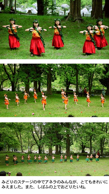 しばふの上でおどったフラダンスとタヒチアンダンスあたらしいけいけんだったね