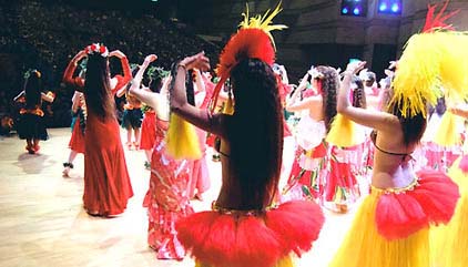 タヒチアンコスチュームもスキルアップに対応して、オテアなどは重装備(?)に耐える筋力をつけてこそ着用可能な伝統的なヒップベルト・ヘッドドレスを着用し、華やかなフィナーレを飾ることができました。